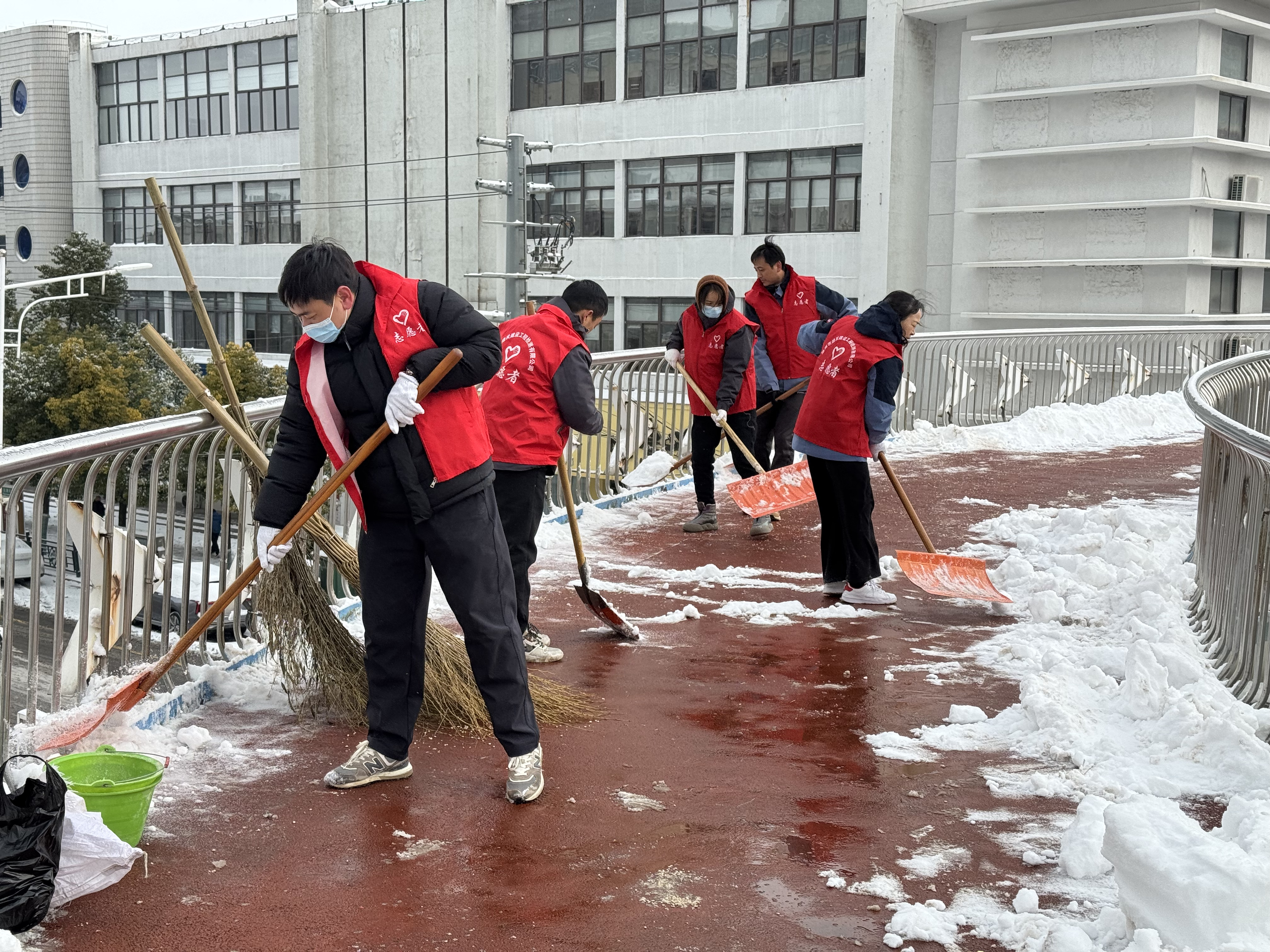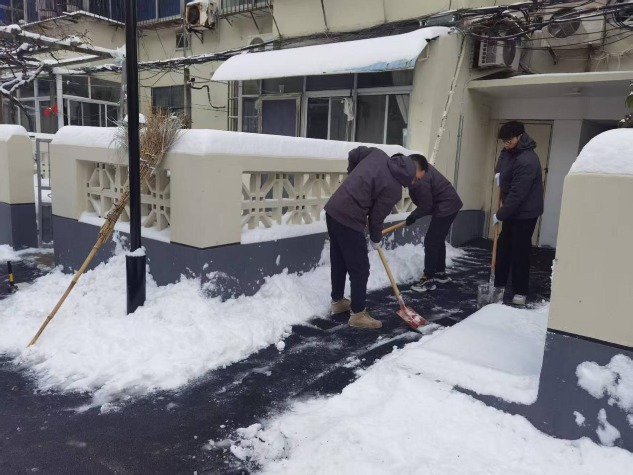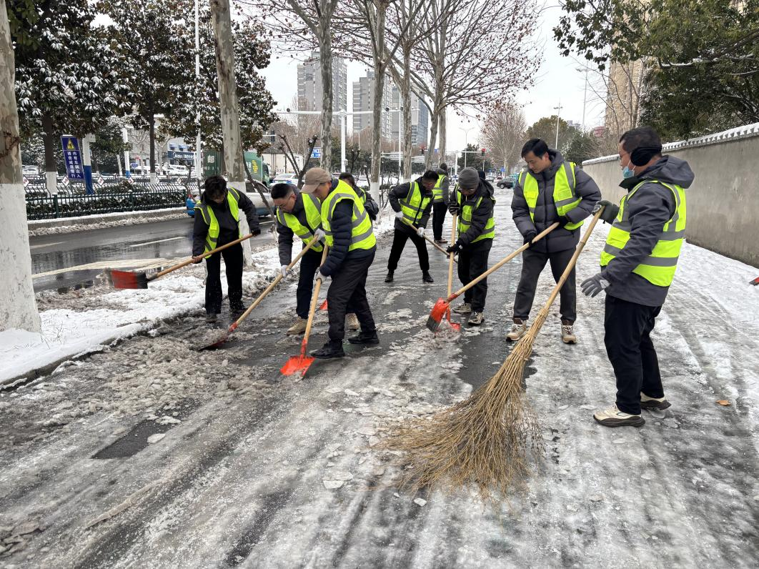 降雪當晚,公司領導率先垂范,連夜趕赴上級公司參與統(tǒng)一組織的除雪行動,帶頭沖鋒在清雪一線;同步組織工作人員對公司門口及周邊重點路段有序拋撒融雪鹽,防范路面結冰打滑,守護夜間行人與車輛出行安全。1月20日上午,公司第一時間組織干部職工分兩批次前往四海天橋、工行小區(qū),大家手持鐵锨、掃帚、推雪板,分工協(xié)作鏟積雪、清死角、通路面,高效完成兩處區(qū)域清雪任務,保障道路順暢通行;1月20日下午,公司積極響應市級部署,集結20名骨干力量奔赴淮舜路鐵路立交橋北頭至陳洞路立交橋路段,集中清除北側非機動車道積雪積冰,助力城市道路恢復通行秩序。